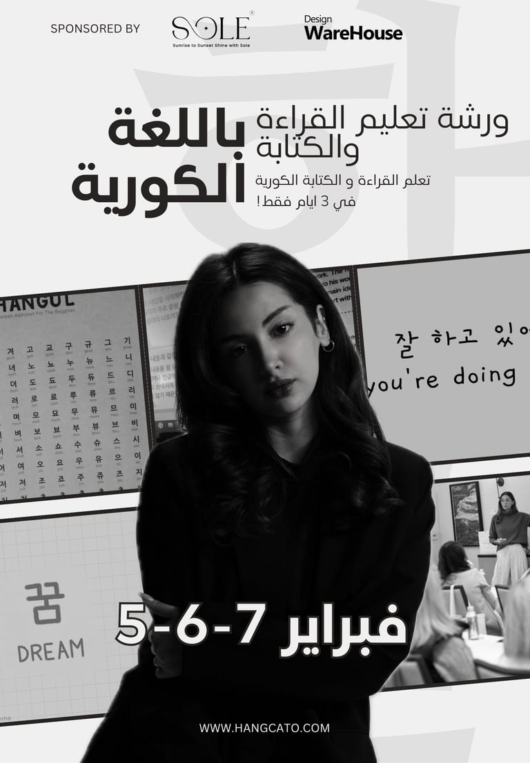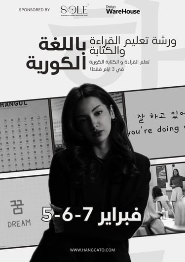 هذه الورشة موجهة للمبتدئين تماماً، وستتمكنون خلالها من قراءة وكتابة الأحرف الكورية (هانغل) في 3 أيام فقط!